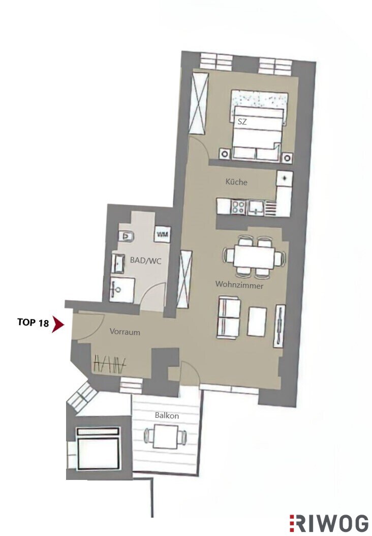 Balkon/Terrassen - Fläche: 6
