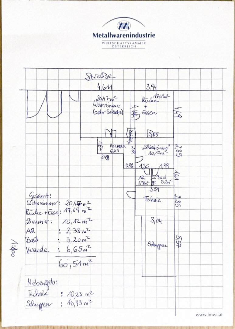 * Einfamilienhaus mit ca. 60m² Wohnnutzfläche + Technikraum 10m² und Schuppen knapp 17 m²