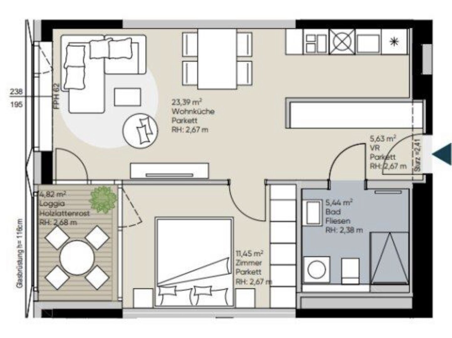 Nutzfläche: 46 m2