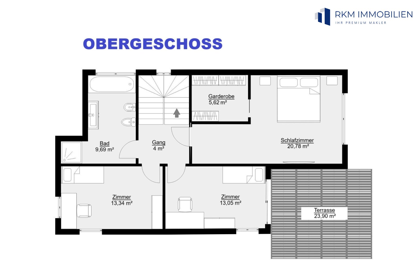 Im Erd- und Obergeschoss erwarten Sie insgesamt fünf lichtdurchflutete Zimmer, die vielseitig nutzbar sind – ob als Schlafzimmer,
