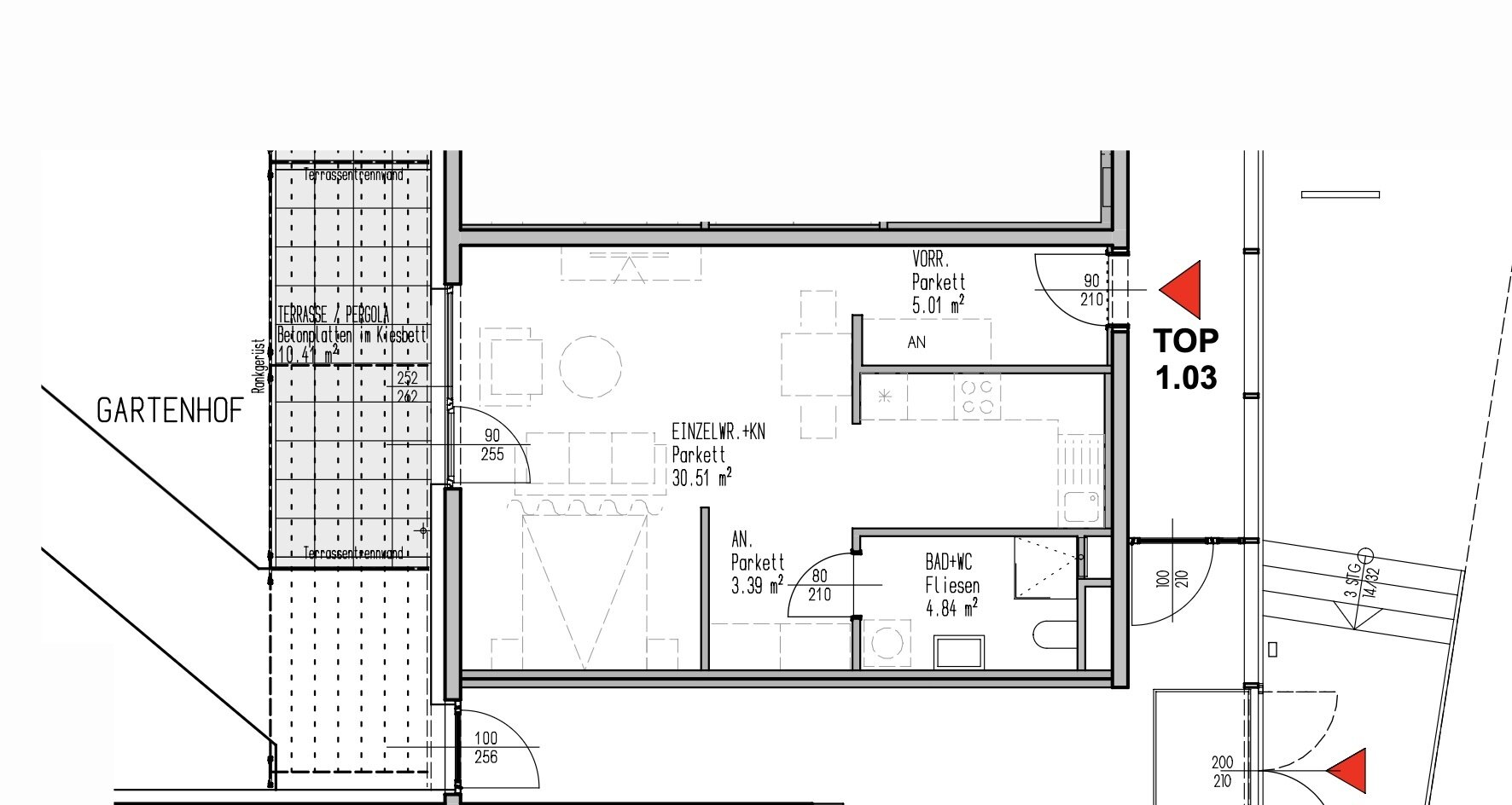 CHARMANTE 1-ZIMMER-WOHNUNG MIT GROSSER TERRASSE IN RUHIGER INNENHOFLAGE – RAXSTRASSE 2