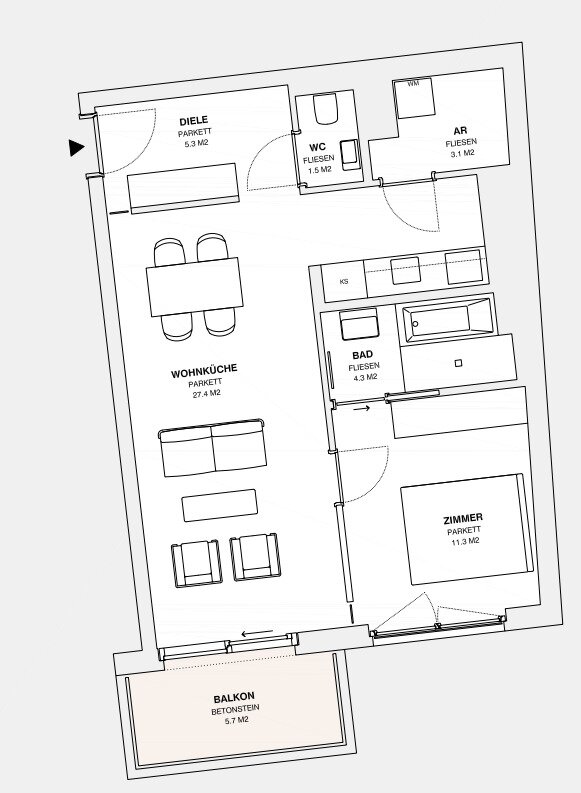 ++ Bei den hier dargestellten Fotos handelt es sich um ähnliche, bereits fertiggestellte Wohnungen des selben Projektentwicklers. Aktuelle Bilder des Projektes MOLLARD50 werden nächste Woche nachgereicht. Der dargestellte Plan/Grundriss ist der der tatsächlichen
