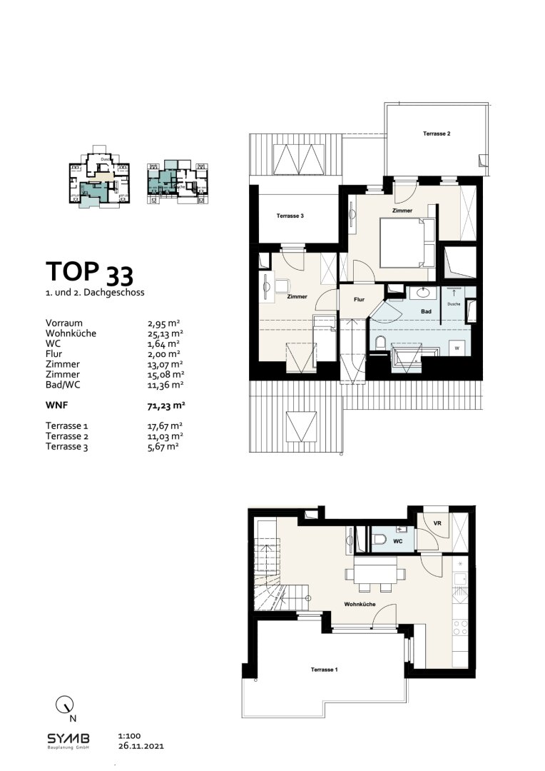 Miete: 3-Zimmer Maisonettewohnung in 1100 Wien mit mehreren Terrassen | 71,23 m² Wohnfläche