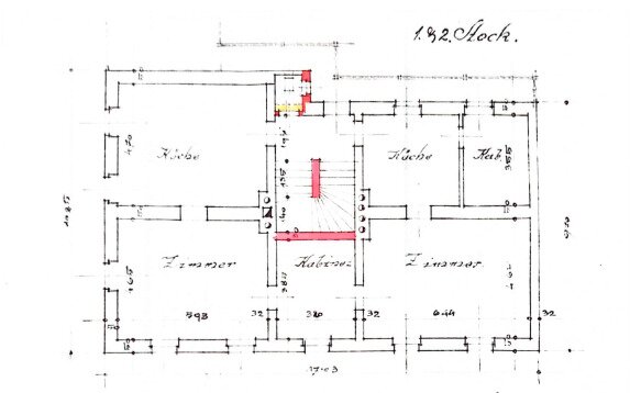 Baupläne der Umbauarbeiten an Haus Nr. 43 in den Jahren 1839 und 1933 konnten ausgehoben werden.