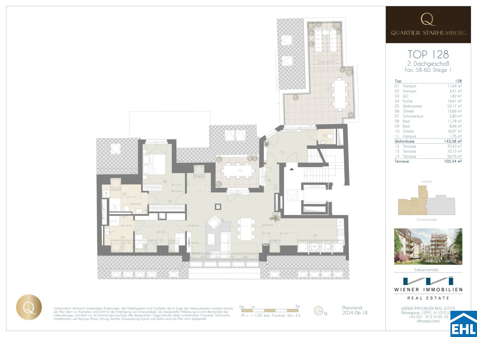 Im „Quartier Starhemberg“ verschmelzen Wiener Geschichte und modernes Wohngefühl zu einem außergewöhnlichen Ensemble. Fünf Baukörper – bestehend aus vier liebevoll revitalisierten Gründerzeithäusern und einer ehemaligen Hutfabrik – bilden ein harmonisches Ganzes rund um eine rund 800 m²