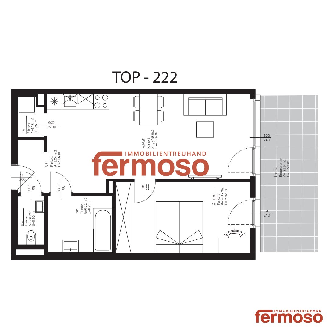 Der offen gestaltete Wohnbereich mit direktem Zugang zur großen Loggia lädt zum Entspannen ein. Ein gut geschnittenes Schlafzimmer, ein komfortables Bad