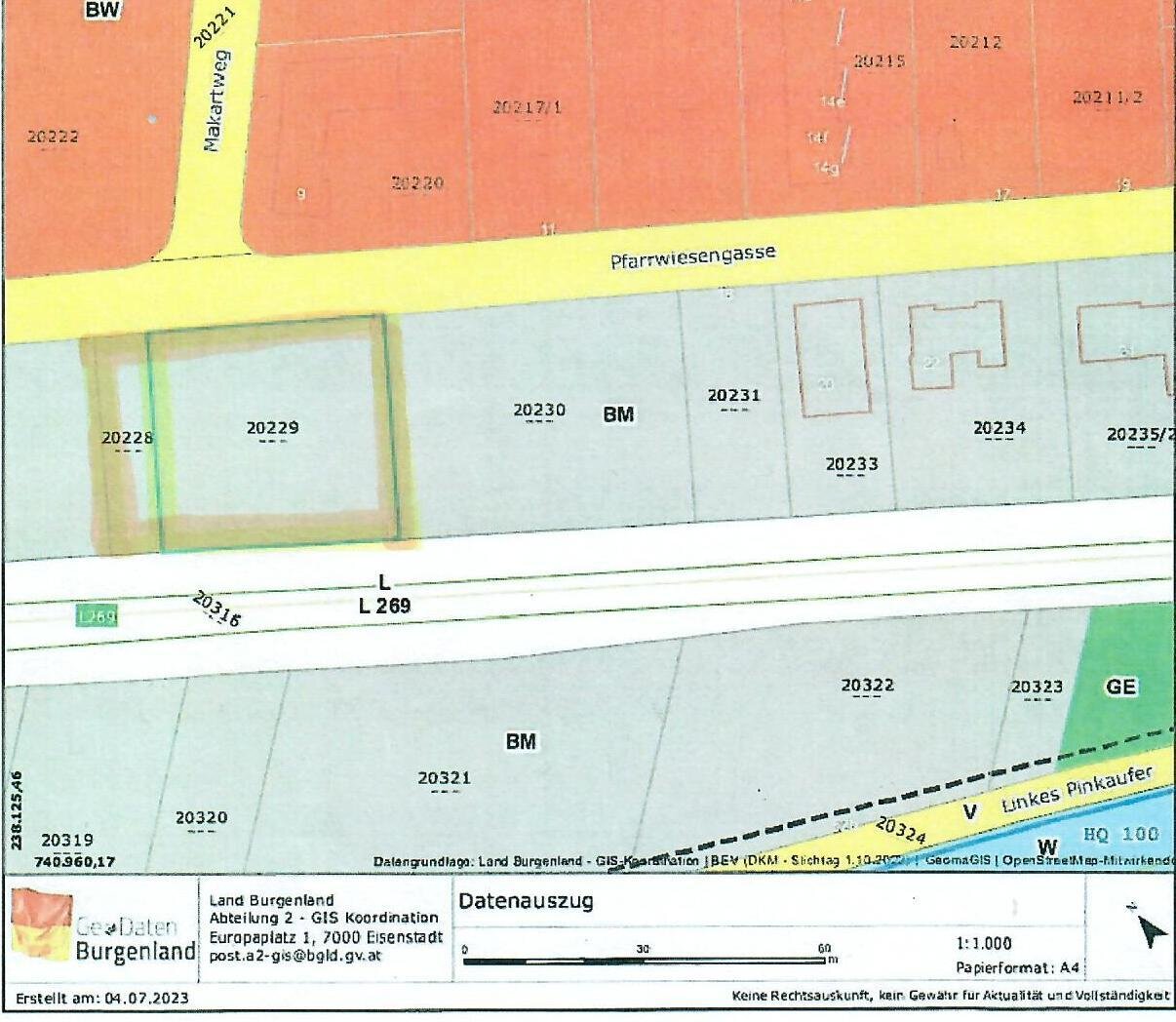 Widmung: BM Bauland – gemischtes Baugebiet E+1 (einstöckiges Gebäude)