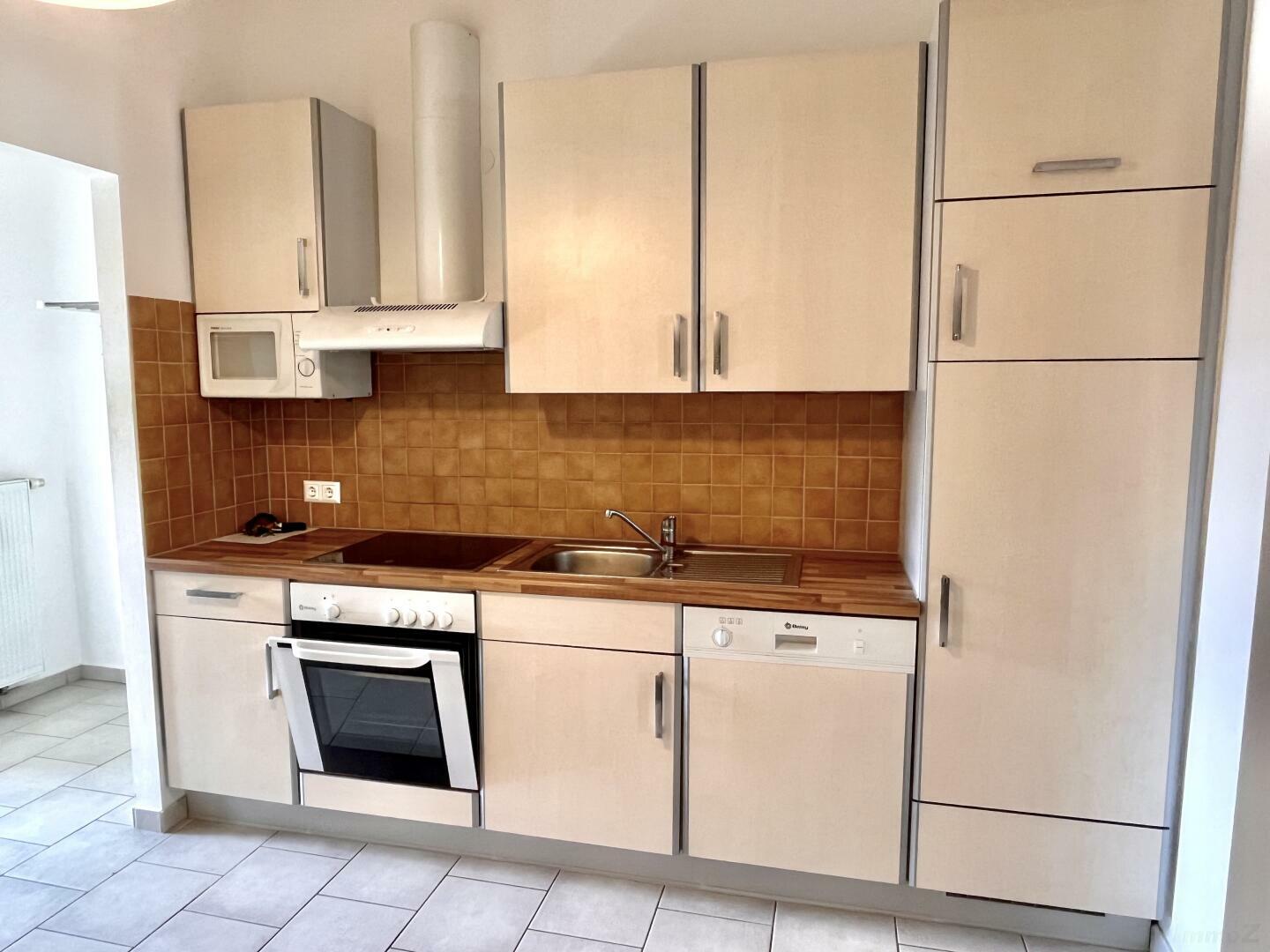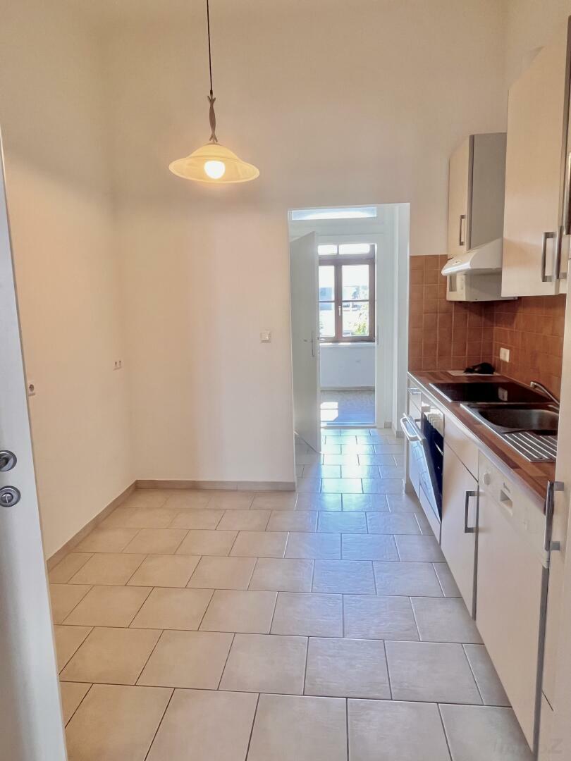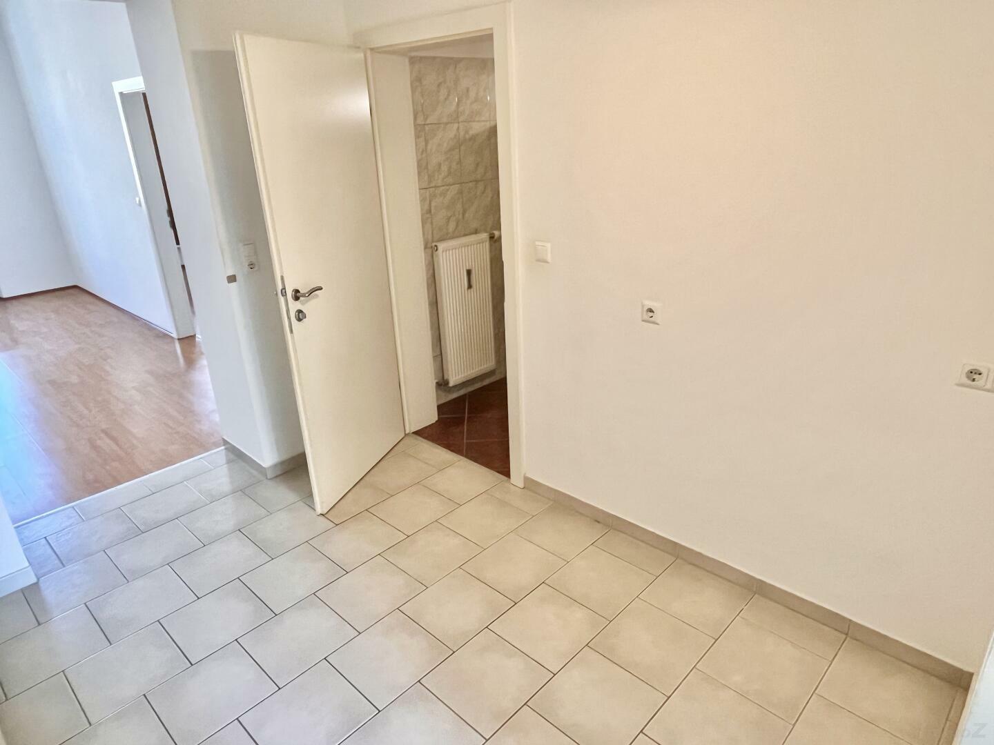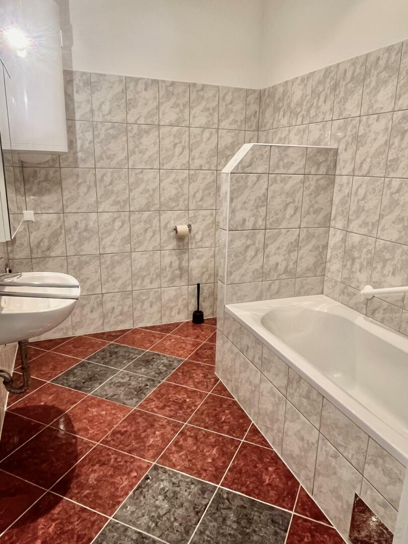 Vorraum, offene Küche, Wohnzimmer (Durchgehzimmer), Schlafzimmer, Bad mit Wanne und WC, Küche – möbliert. Für die Heizkosten wird ein eigener Vertrag abgeschlossen – der Durchschnittsverbrauch liegt bei 95 €/Monat und ist bereits in den monatlichen Kosten berücksichtigt.