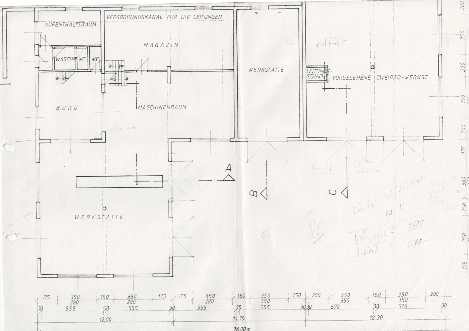 Die voll eingerichtete KFZ Werkstätte mit 2 Hebebühnen befindet sich im Untergeschoß des Objektes, das in den
