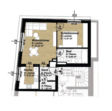 Geförderte Wohnung in Niedrigenergiebauweise mit PKW-Abstellplatz.
