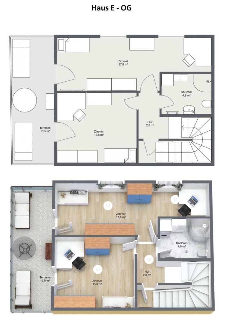 Das in Ziegelmassiv-Bauweise errichtete Haus bietet auf 3 Ebenen einer Familie genügend Platz und Privatsphäre an. Im Erdgeschoss sind das große Wohnzimmer mit offen gehaltener