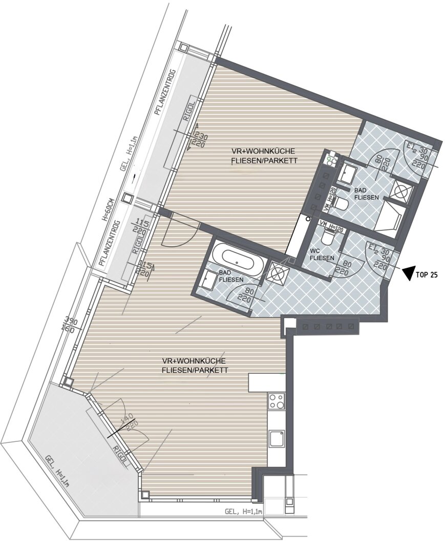 Balkon/Terrassen - Fläche: 12