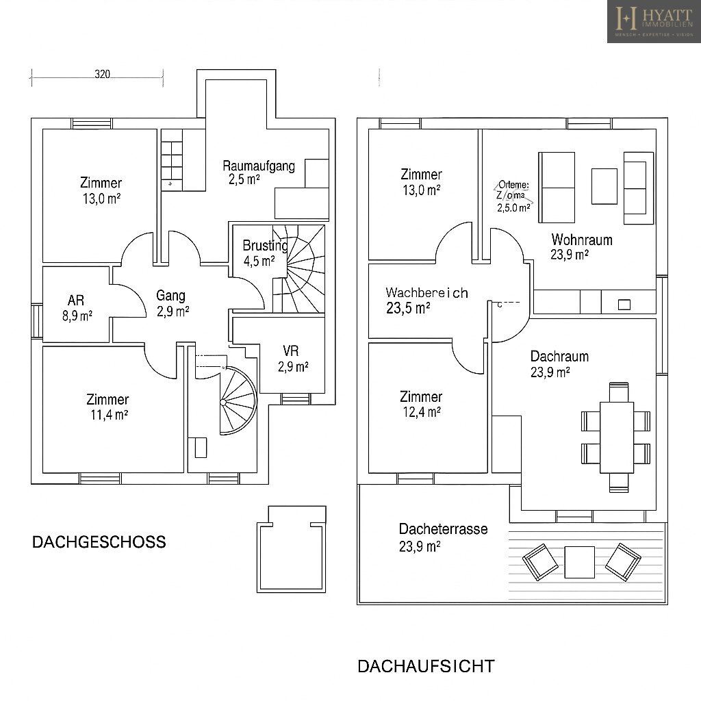 circa 130 m² Wohnfläche zuzüglich Terrassen und Balkonen sind hier nach einer noch zu machenden Bewilligung möglich und ein über 40 m² zur alleinigen Nutzung