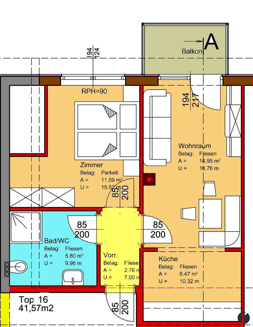 Zur Vermietung kommt eine 2-Zimmer Wohnung samt Balkon im 2. Stock eines Mehrperteienhauses in Würmla.