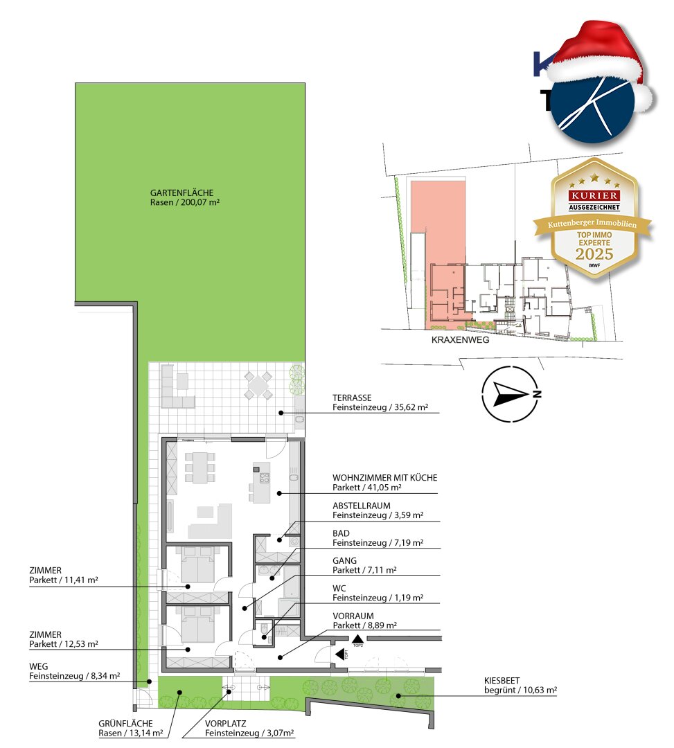 🌻🌼🌺Gartenwohnung mit 260m² AuĂźenbereichen (Top 1) – Neubauprojekt am Kremser Steindl