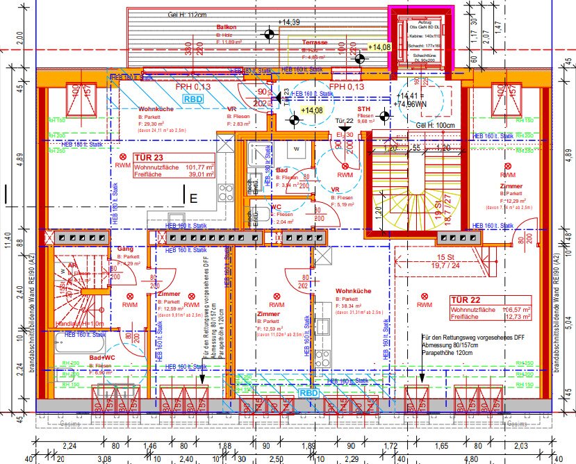 Die geplante Entwicklung umfasst zwei gut geschnittene Wohnungen mit einer Gesamtwohnnutzfläche von ca. 208 m² sowie Freiflächen von insgesamt ca. 52m². Die geplanten