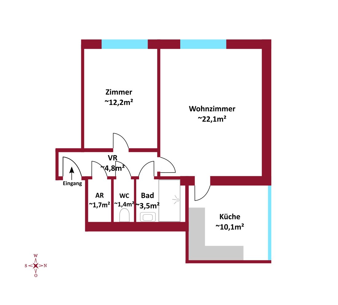 Insgesamt stehen 6 Einheiten mit Größen von ~55m² bis ~128m² und 2 bis 4 Zimmern zur Vermietung.