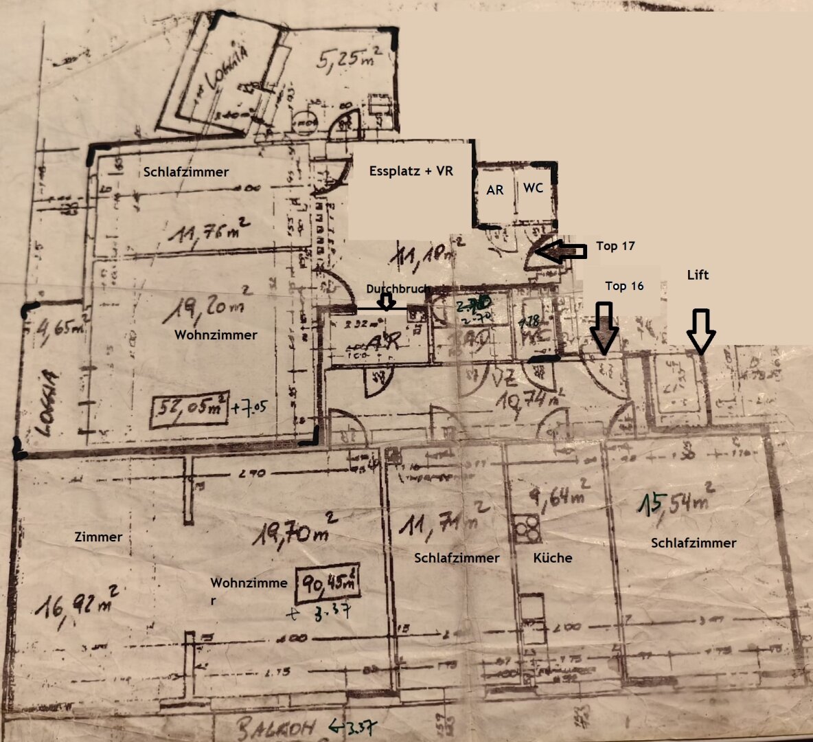 Zum Verkauf gelangen hier zwei Wohnungen die direkt nebeneinander liegen und durch den Abstellraum als Durchbruch miteinander verbunden sind. Die Top 16 (größere Wohnung) wurde soeben saniert: neue Elektroleitungen, Fliesen, Küche, Türstöcke und Türen eingebaut und die Wohnung mit neuen Klimageräten ausgestattet, sowie die Wände neu verputzt und ausgemalt worden! Die kleinere