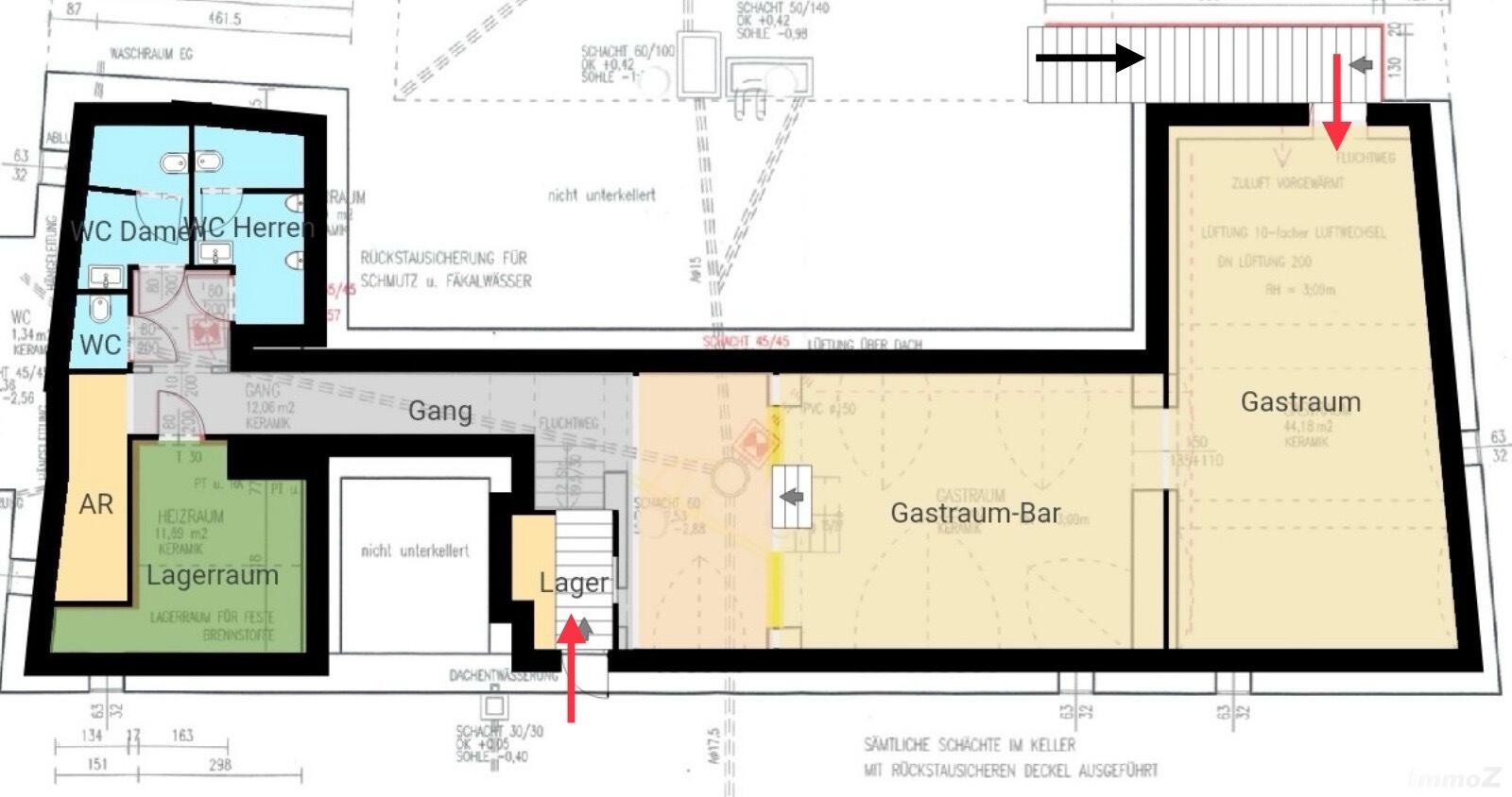 Der Lokal – mit Gewölbe befindet sich in guter Frequenzlage, Nahe der Universität, TU, Kunstuni, Es besteht aus 2 Gasträumen, Gang, Damen, Herren und Personal WC, sowie einem Lagerraum, einer Abstellnische, einem Eingang, sowie einen Notausgang. Die Räume sind mit einer Lüftung ausgestattet. Das Gewölbe und Mauerwerk wurden sandgestrahlt. Fliesenboden,