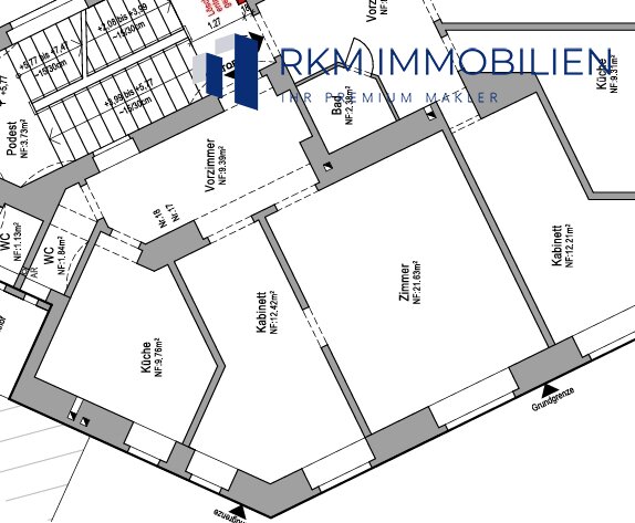 Mit einer großzügigen Fläche von 53 m² erstrecken sich hier zwei lichtdurchflutete Zimmer,