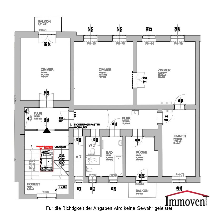 + 4 Zimmer (1 Zimmer mit Zugang auf einen Balkon)