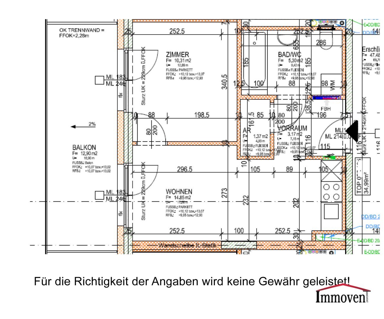 Sie bietet eine Wohnfläche von 34,99 m² und folgende Raumaufteilung: