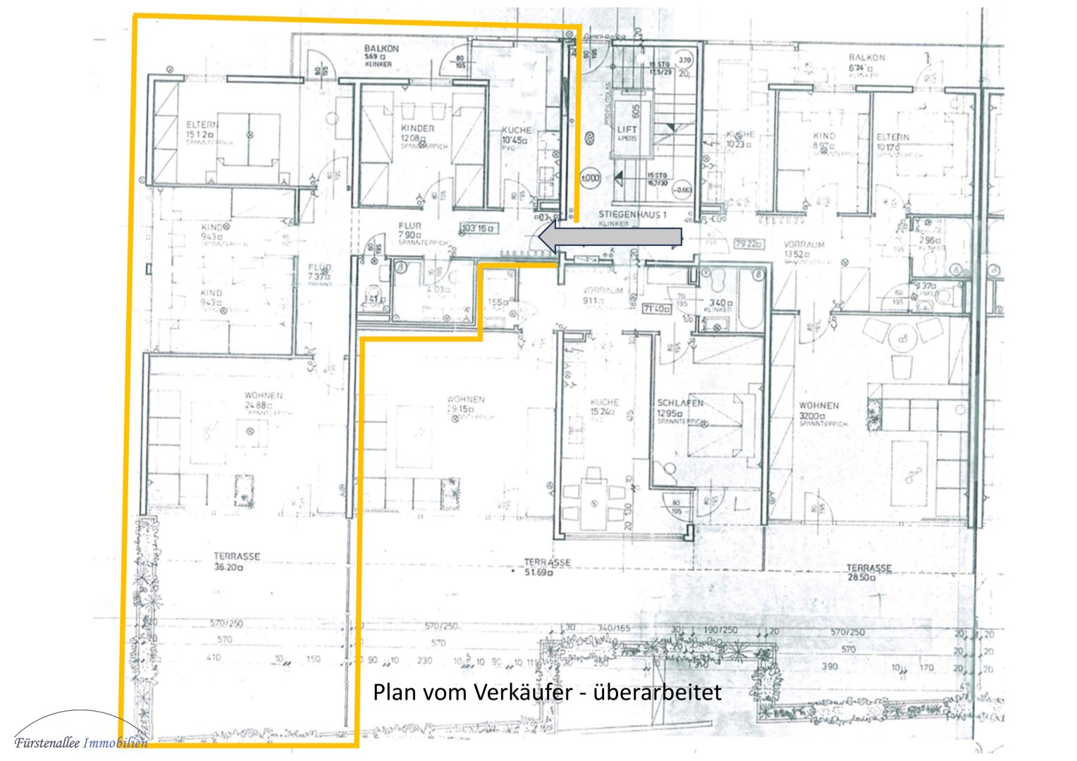 KAUF SALZBURG STADT – PREMIUMLAGE BORROMÄUMSTRASSE: 103 m² 4-Zimmer-Wohnung – mit 36 m² SÜD-TERRASSE und TG-Stellplatz