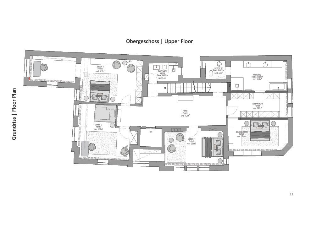 Das Haus wurde 2025 aufwendig saniert und umfasst insgesamt vier Geschosse mit 6-8 Zimmern, die bequem über eine
