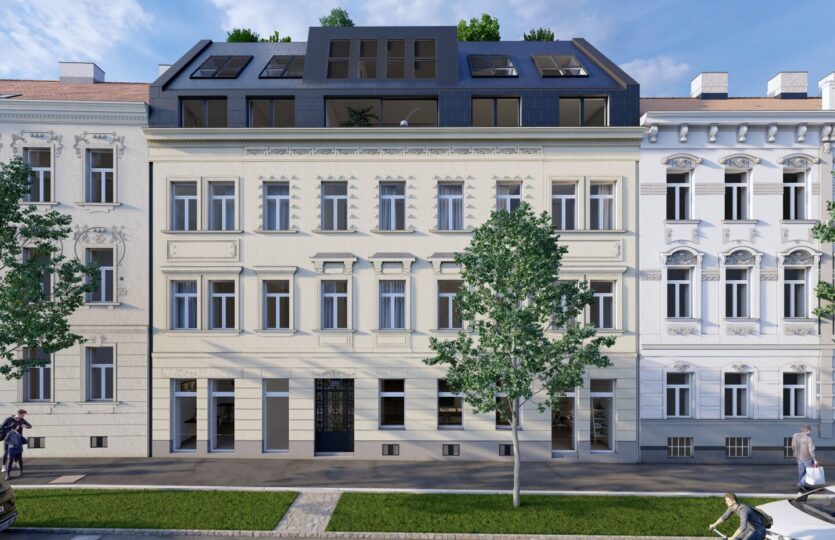 Diese hochwertig sanierte Dachgeschosswohnung befindet sich in einem liebevoll revitalisierten Zinshaus im Herzen des begehrten 14. Wiener Bezirks. Die Kombination aus edlen Materialien und modernster Haustechnik schafft ein exklusives Wohnambiente mit höchstem Komfort. Das Herzstück der Wohnung bildet der großzügige Wohn- und Essbereich (ca. 40m²) mit direktem Zugang zu einer