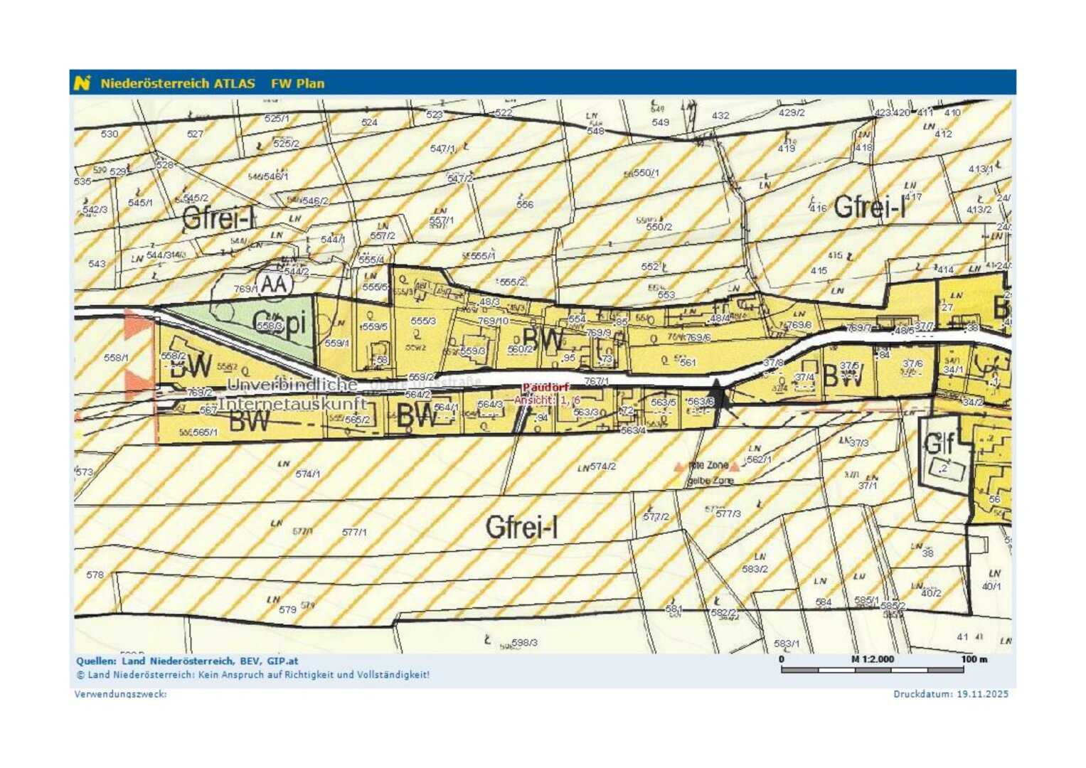 Das Grundstück weist laut Grundbuch eine Fläche von gesamt 456 m² mit der Widmung „Bauland Wohngebiet“ auf. Die Liegenschaft wurde von 1967 bis 1970 errichtet, in diesem Jahr erfolgte auch damals die Kolladierung / Benützungsbewilligung.