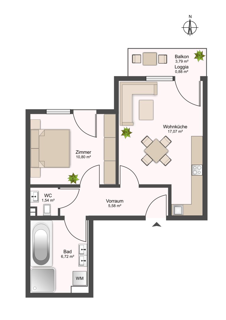 Die durchdachten Grundrisse bieten 2 bis 3 Zimmer auf rund 42–66 m² Wohnfläche. Jede Wohnung