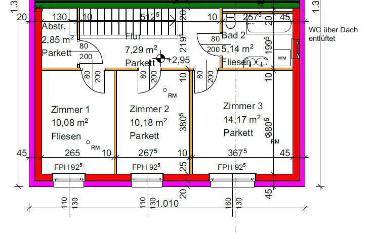 im Obergeschoß aus: Vorraum, 3 Zimmer, Badezimmer mit WC, Abstellraum