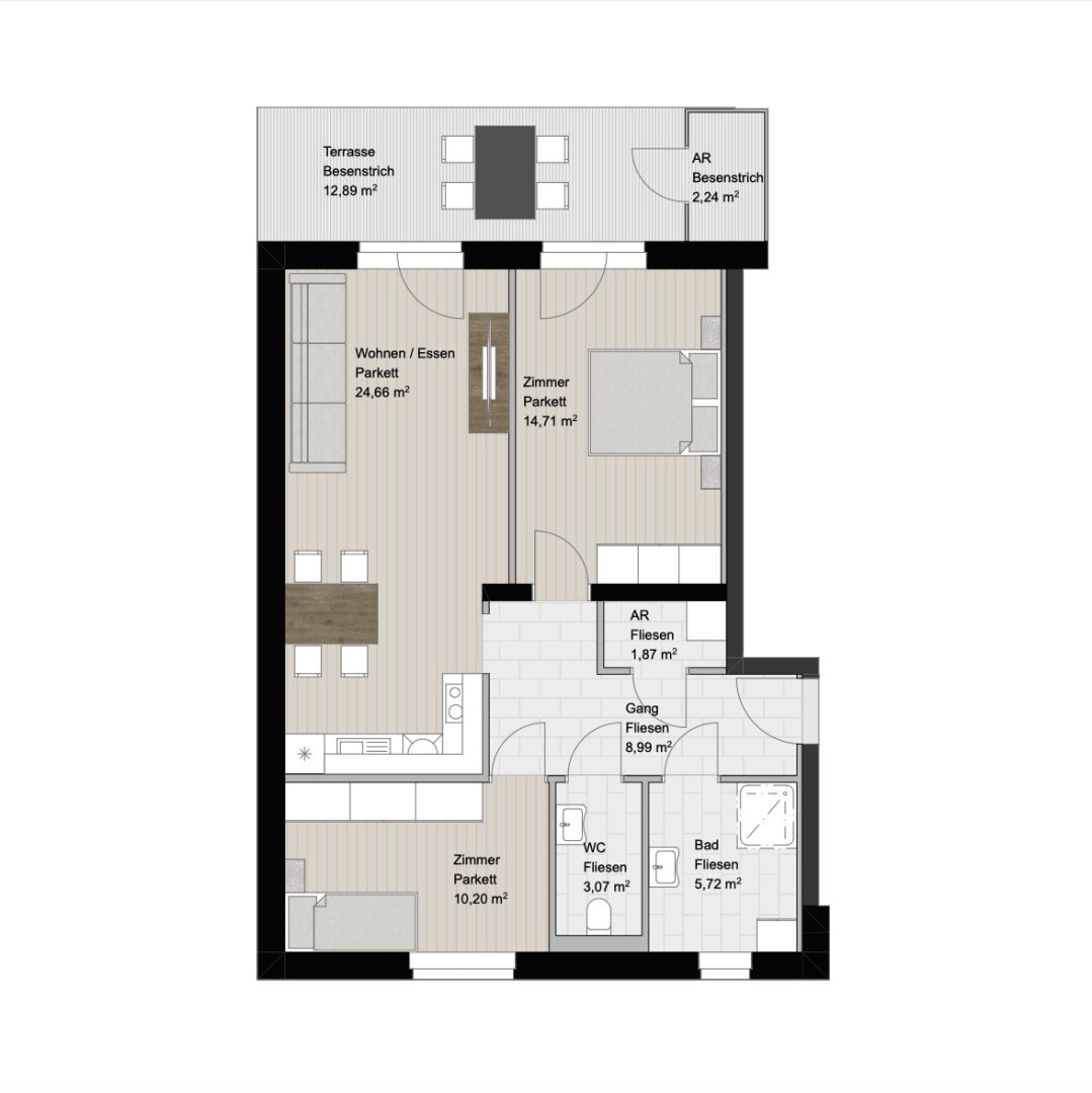 Die Wohnungen überzeugen durch durchdachte Grundrisse, großzügige Terrassen, Balkone bzw. Eigengärten, eine energieeffiziente Ziegelmassivbauweise sowie eine gehobene, zeitlose Ausstattung.