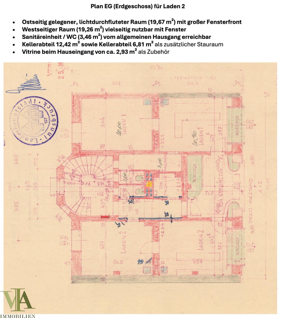 Zum Verkauf steht ein 42,39 m² großes Büro/Geschäftslokal im Erdgeschoss in der Adamgasse, 6020 Innsbruck. Das Geschäftslokal befindet sich in sehr gepflegtem Zustand.