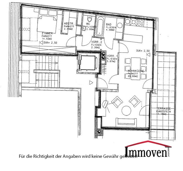 Die 2-Zimmerwohnung befindet sich im 1. Dachgeschoss (Lift vorhanden), bietet eine Nutzfläche von ca. 62 m² und eine Terrasse.