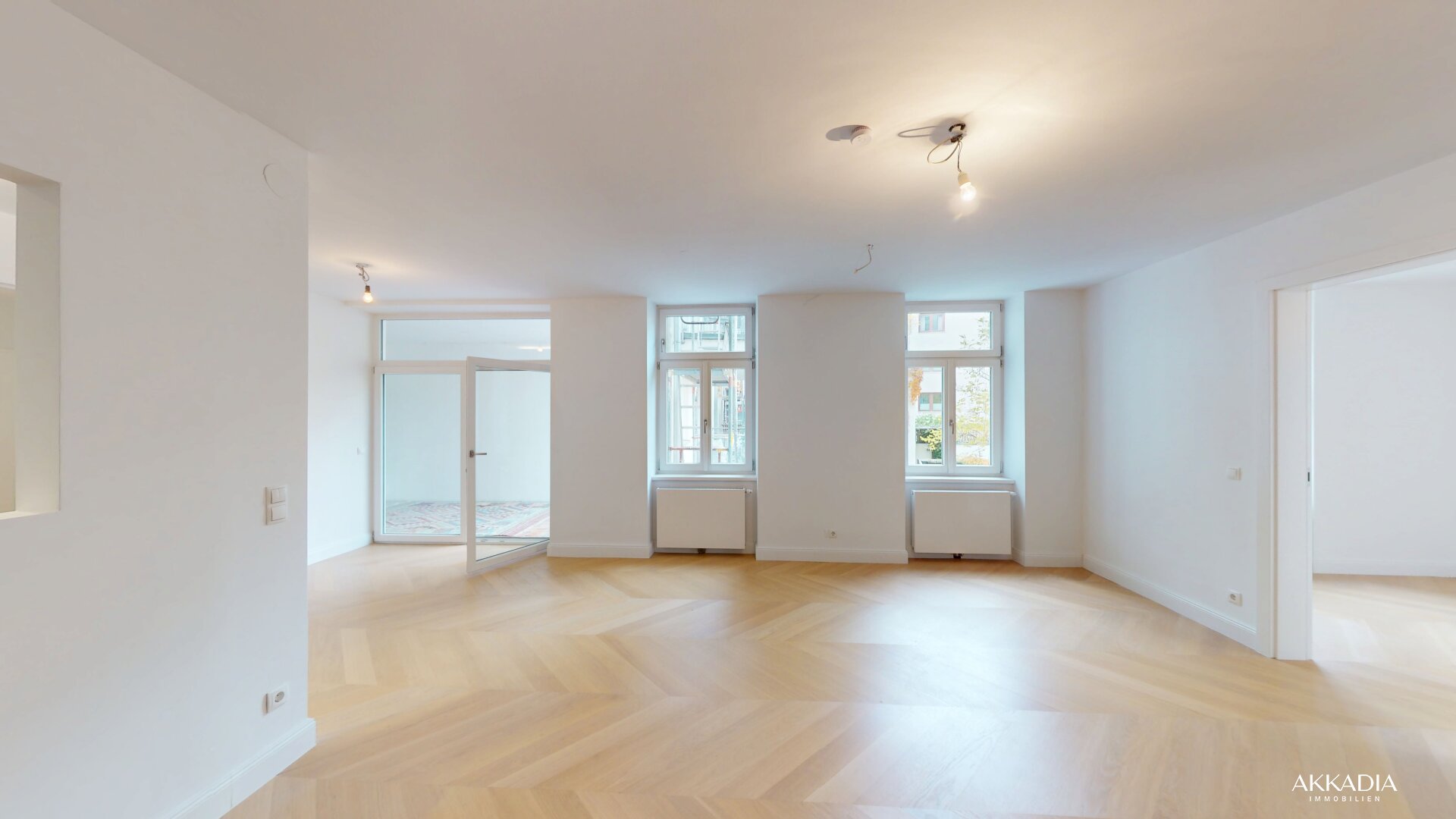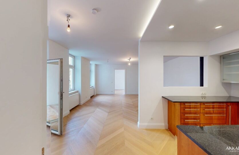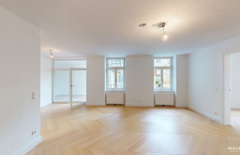 Diese außergewöhnliche Wohnung im 2. Liftstock bietet eine Wohnnutzfläche von ca. 80 m² (inklusive Loggia) sowie eine rund 23 m² große Terrasse mit Blick in den begrünten Innenhof.