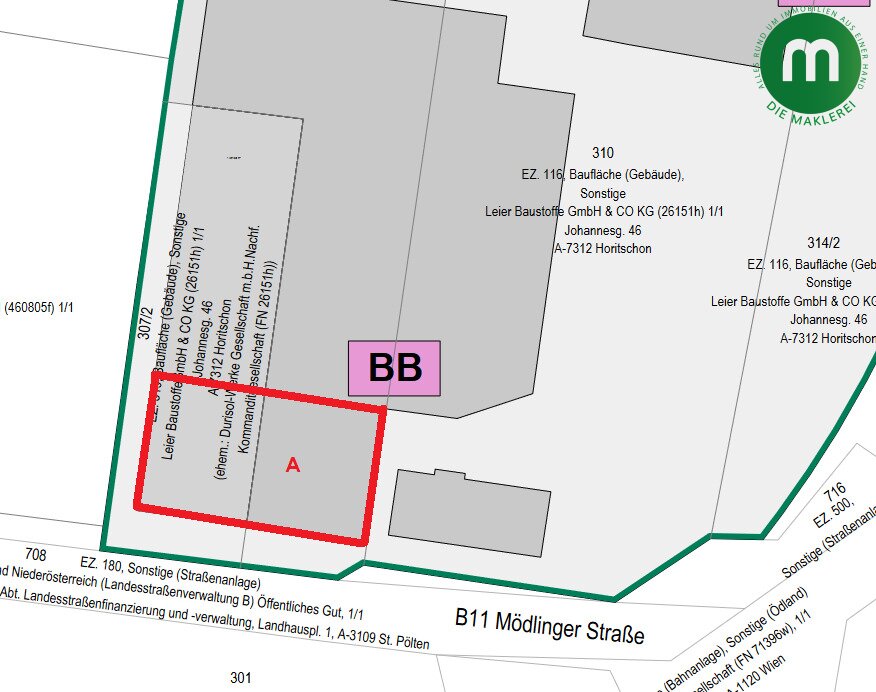 Zur Vermietung gelangt ein Betriebsgebäude mit 390 m² Bürofläche auf 2 Geschoßen + 1.000 m² Lager.