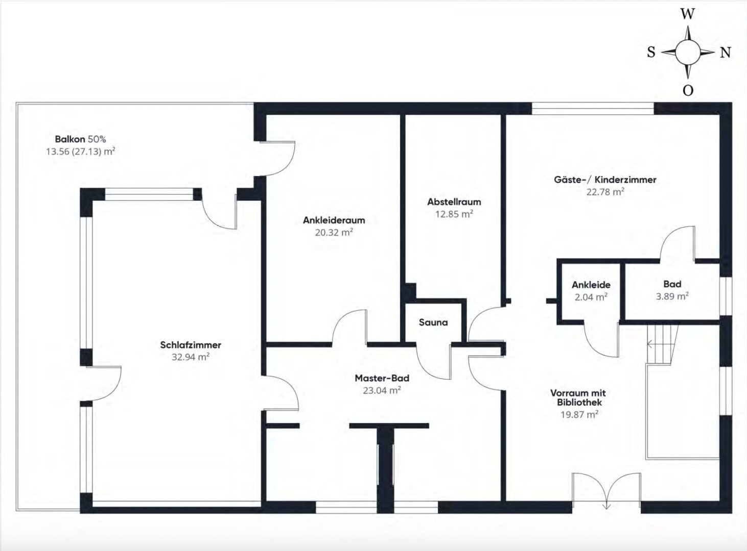 Auf rund 325 m² Wohnfläche zuzüglich etwa 84 m² Nutzfläche verteilen sich insgesamt sechs