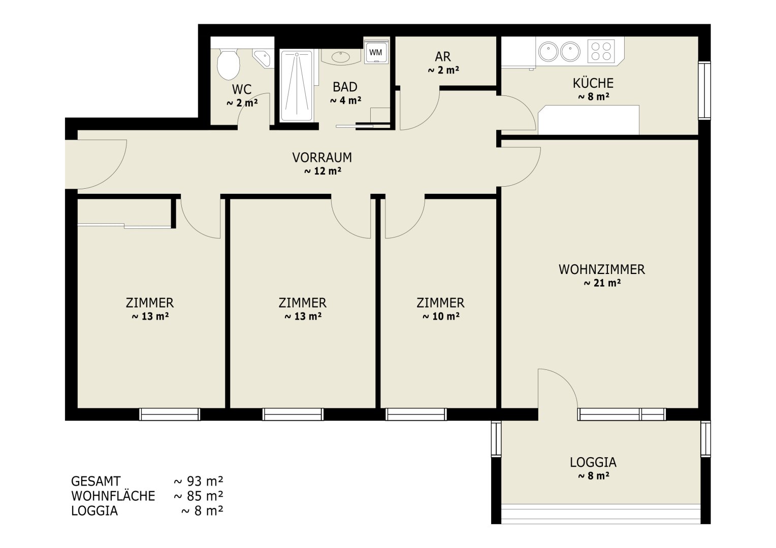 * 3 Schlafzimmer + Wohnzimmer mit 8m² Loggia