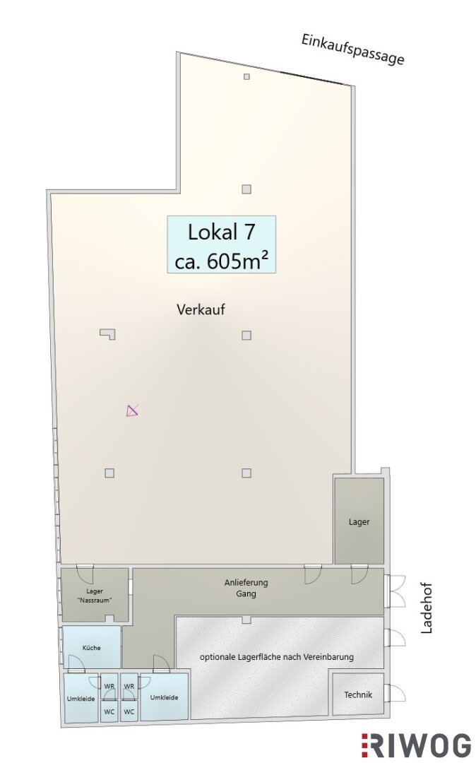 Die belebte Einkaufspassage liegt zwischen Bahnhof und Sparkassaplatz. Aufgrund der guten Kundenfrequenz haben sich bereits diverse namhafte Konzerne angesiedelt. Es steht ein eigenes Parkdeck für Kunden zur Verfügung, die 90min kostenlos parken können.