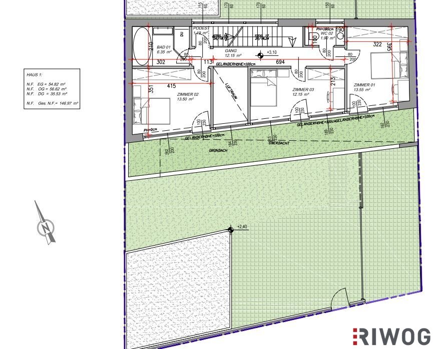 Die Bebauungsbestimmungen lassen sowohl ein großes Haus (35% bebaubar) als auch 3 Wohneinheiten zu (Studie siehe BILDER bzw. auf Anfrage).