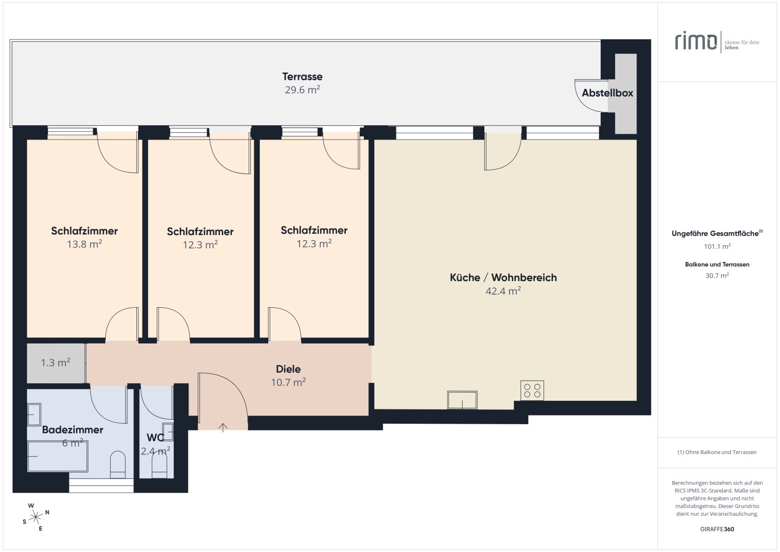 Mit einer großzügigen Fläche von 101,09 m² bietet diese 4-Zimmer-Wohnung ausreichend Platz für Familien, Paare oder kreative Köpfe, die viel Raum für Ideen und Entfaltung benötigen.
