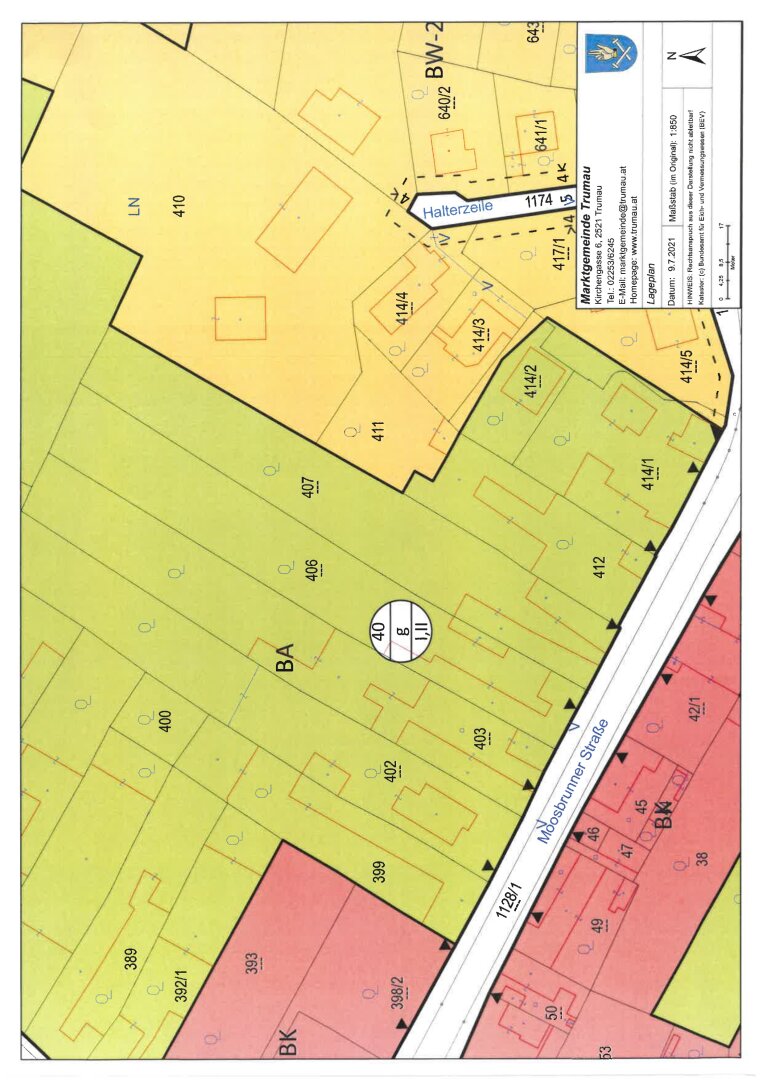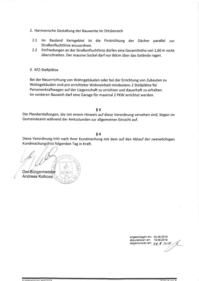 Flächenwidmungsplan und Bebauungsbestimmungen: siehe beiliegende Unterlagen