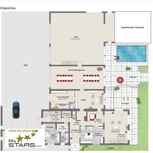 Diese außergewöhnliche Immobilie bietet Ihnen die perfekte Kombination aus modernem Komfort und ländlichem Charme. Mit einem großzügigen Raumangebot von ca. 500 m² verteilt auf 10 lichtdurchflutete Zimmer, ist dieses neuwertige Sacherl der ideale Ort für Familien, die das Besondere suchen.