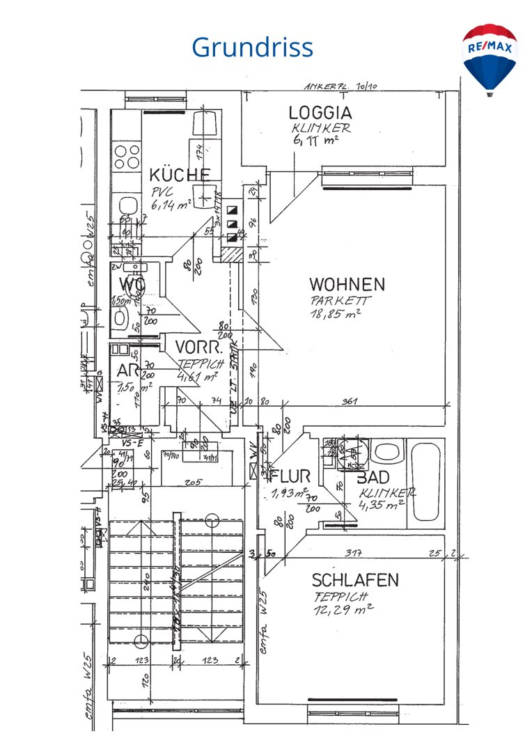 Vorhaus, Küche, Bad und WC getrennt, Das Wohnzimmer mit westseitiger Loggia bietet einiges an Sonne. Das Schlafzimmer ist auf der