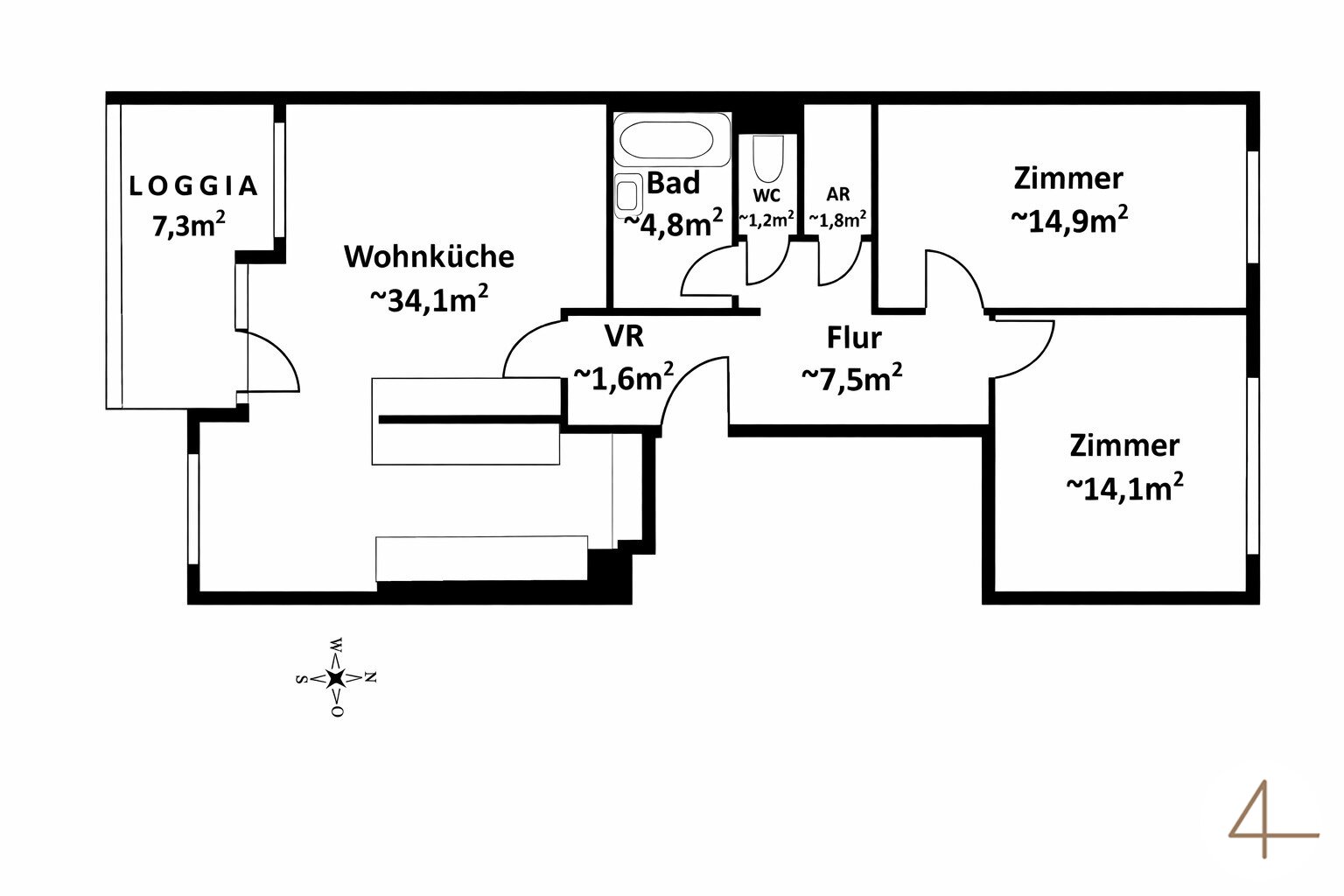 Ziimmer insgesamt: 3
