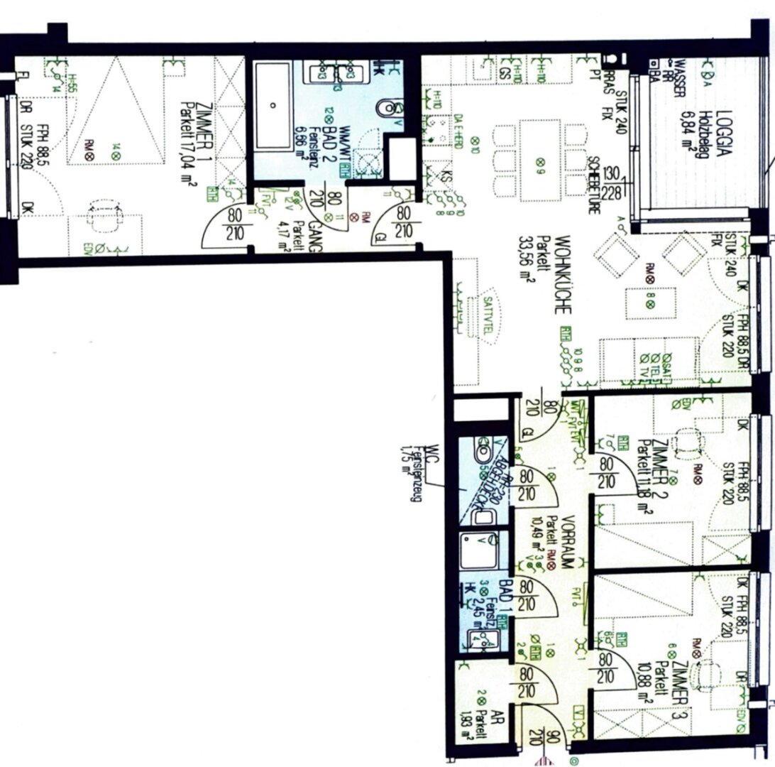Die Wohnung befindet sich im Ersten Stock und ist leicht südöstlich / östlich ausgerichtet. Eine ca. 7 m2 große Loggia bietet viel Platz zum entspannen und die Ruhe genießen.