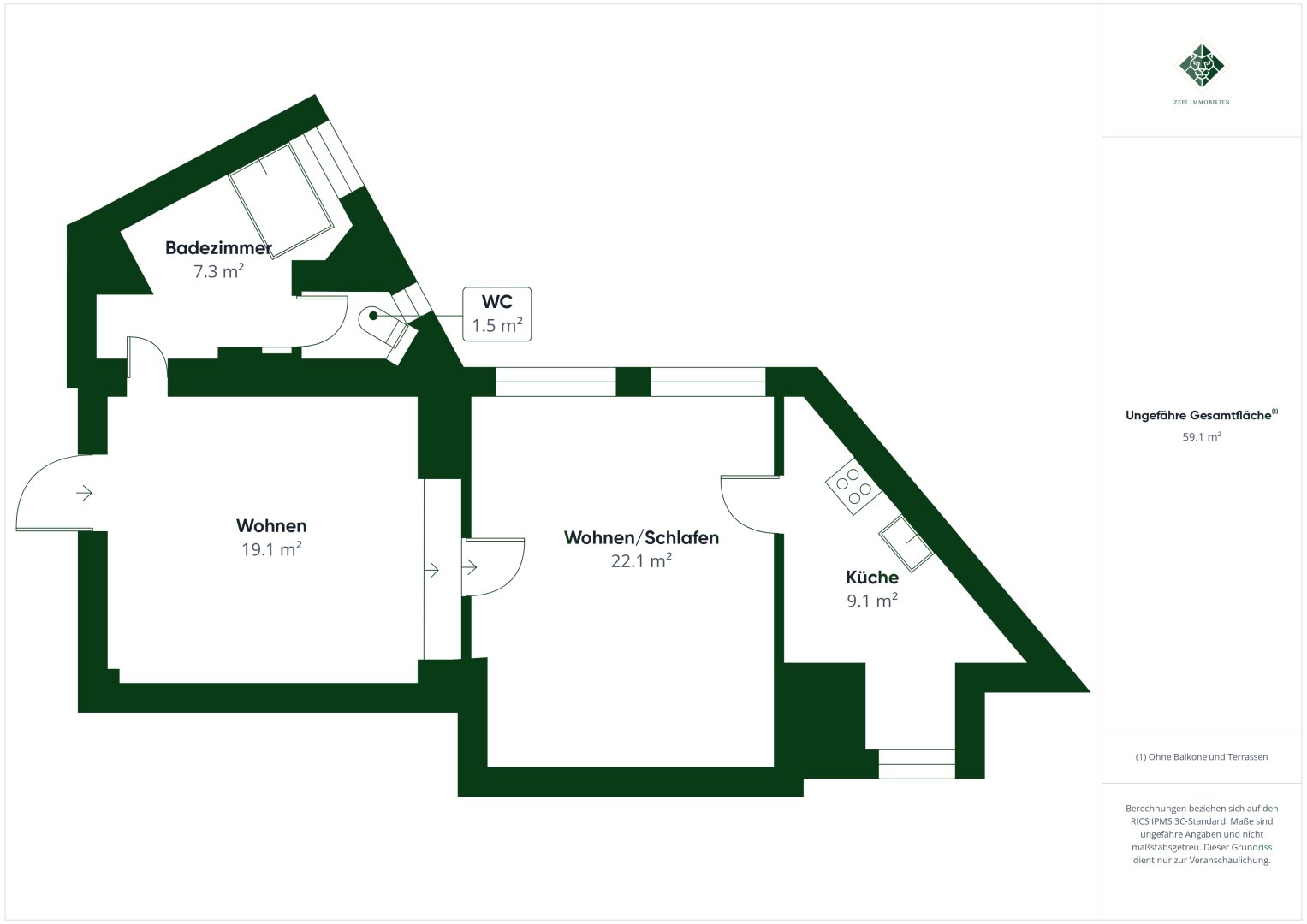 Gesamtfläche: 55 m2