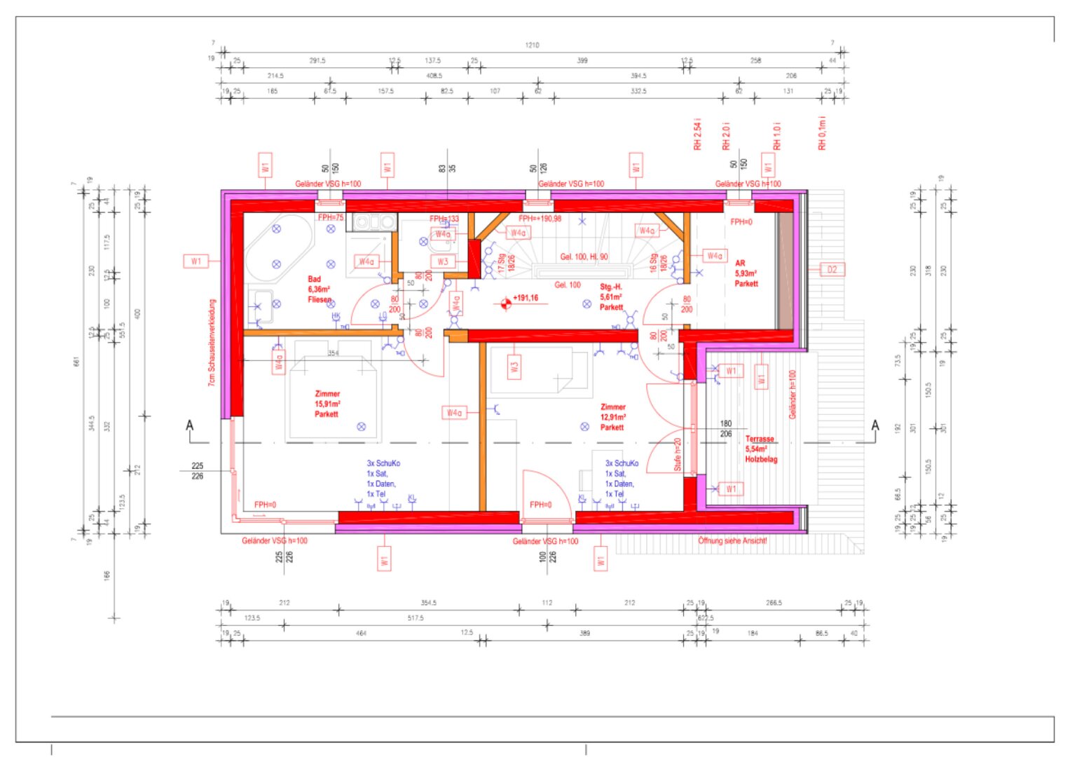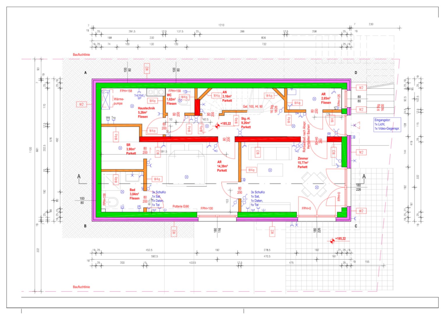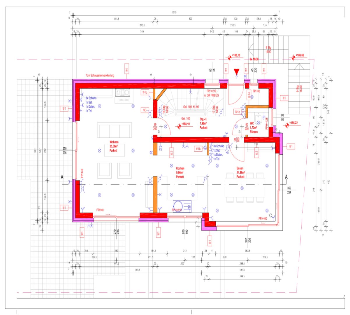 Erdgeschoss mit 2. Eingang: Wohnzimmer mit offenem Kamin (25,6 m2) Esszimmer (14,9 m2),