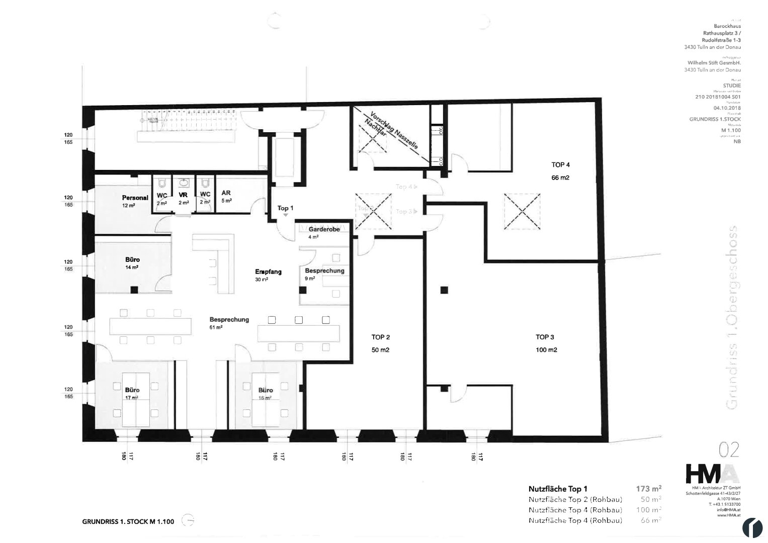 Zur Vermietung kommt ab 1.5.2026 ein modernes, großzügiges Großraumbüro mit ca. 173 m² Bürofläche im 1. Liftstock in zentraler Lage in Tulln.